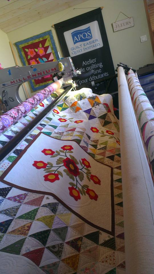 What I have done over a year!! Two nice pillows with the curve system of SEW KIND OF WONDERFUL My wild flower quilt !! I will post a picture of it finished and on my wall, just love working in the garden when the weather is perfect ! Santa, from the same authors, SEW KING OF WONDERFUL. SO much fun to do ! New cushions for the patio furniture, with a little help of a friend. Just love it, Flamingo love !! Elephant ears, nice and b...